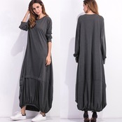 ゆったりとしたロングドレスプラスサイズのドレス不規則な長袖ラウンドネックカジュアルTシャツを販売する女性のヨーロッパとアメリカンスタイルのファッション 大きめサイズ Oネック ヨーロピアン 6733089765279031