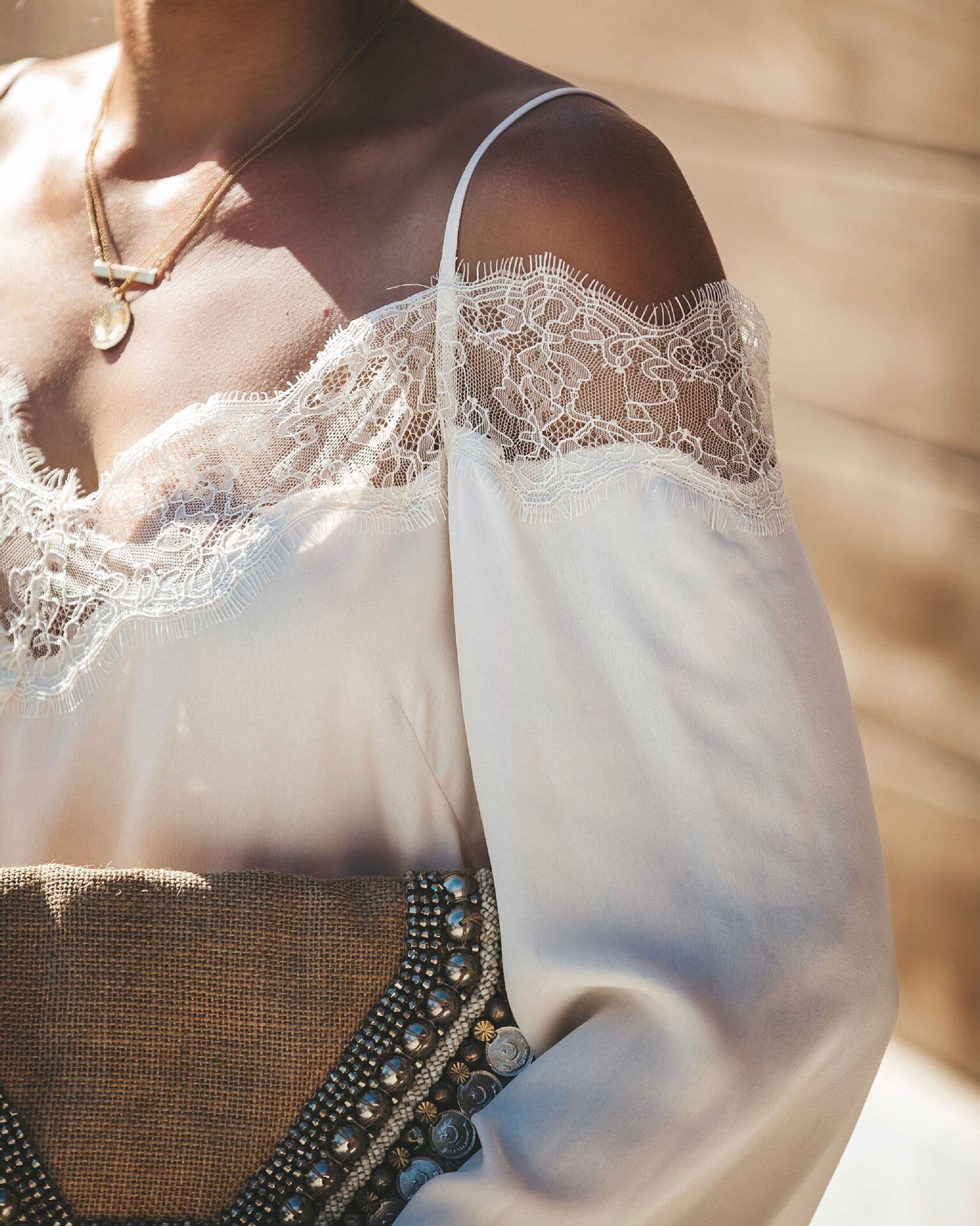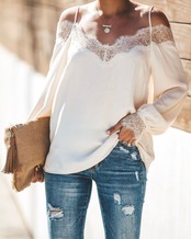 ヨーロッパの粘着性のあるeignトレードストラップレス夏のセクシーなファッションヨーロッパとアメリカのレースレースステッチシフォン長袖トップTシャツの女性 ロング サマー 夏物 ヨーロピアン 6733090524377105