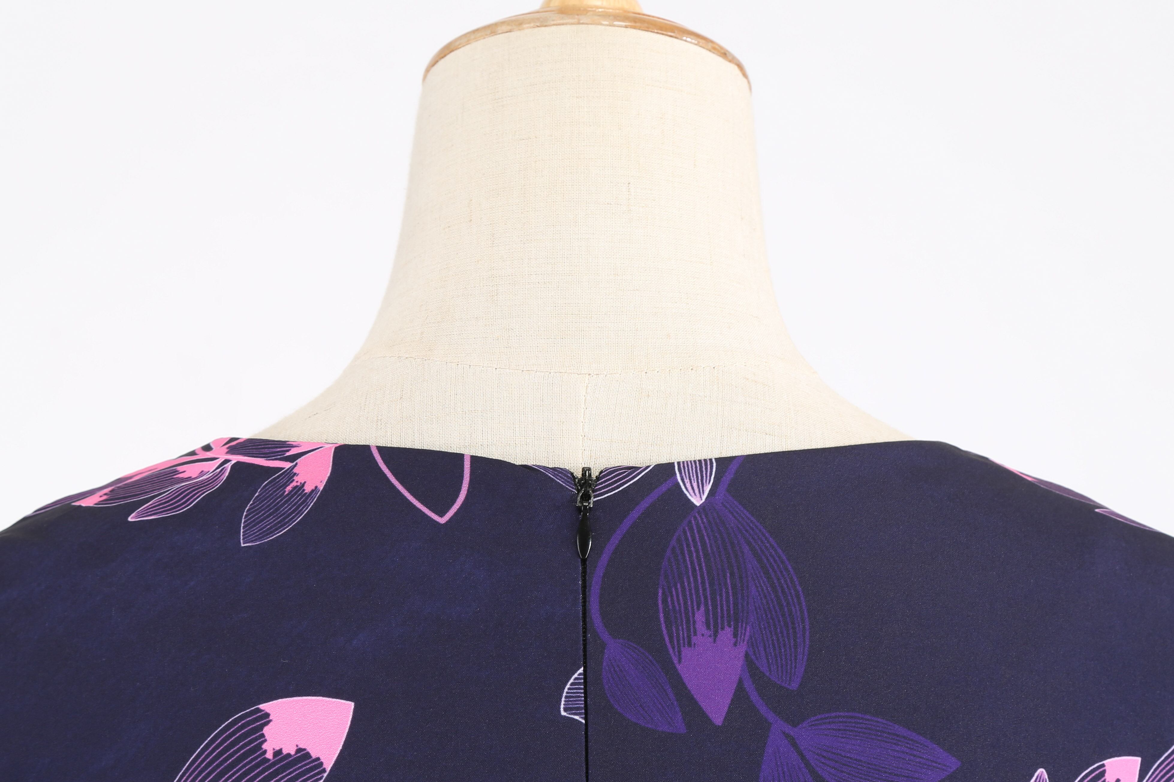 ヨーロッパとアメリカンスタイルのプルオーバージッパーミッドスカートハイウエストファッションレトロヘップバーンプリントVネックミッドスリーブラージスイングドレス ヨーロピアン 6733044206619927