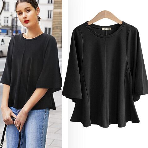 ヨーロッパとアメリカンスタイルのファッション販売Tシャツルーズで薄いファッション蓮の葉スイング大きなトランペットスリーブトップ女性の潮 ヨーロピアン 6733028107781065