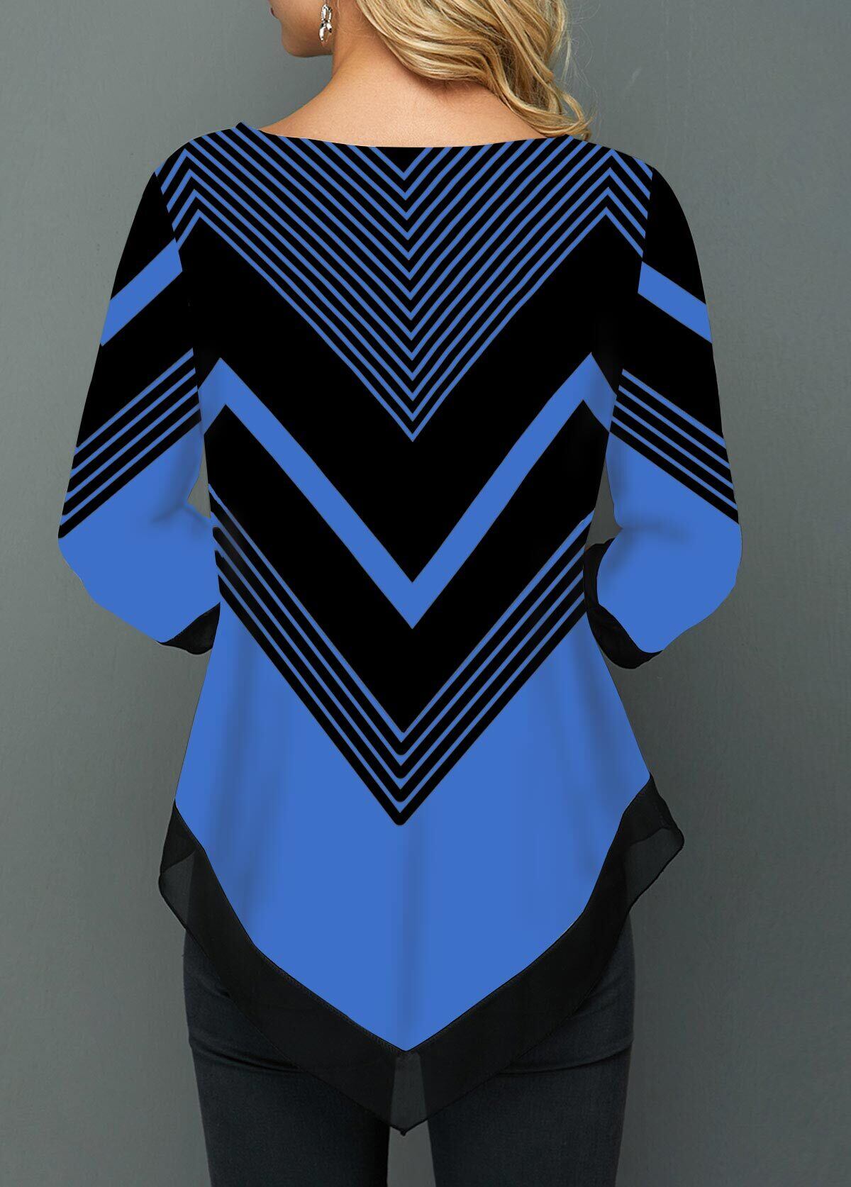 春、秋、冬のラウンドネックの甘くてファッショナブルな新製品ヨーロッパとアメリカは、ストライプの不規則なプリントステッチの9ポイントスリーブTシャツを望んでいます 大人ガーリー スウィート キュート カジュアル スプリング 春物 オータム 秋物 ウィンター 冬物 Oネック 6733013825264671