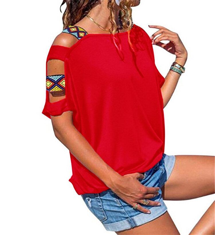 AliExpress ebay Amazonは、ヨーロッパとアメリカンスタイルの新しい女性の無地の中空半袖オフショルダーTシャツのトップトレンドを望んでいます ソリッドカラー ヨーロピアン 6733089514411460