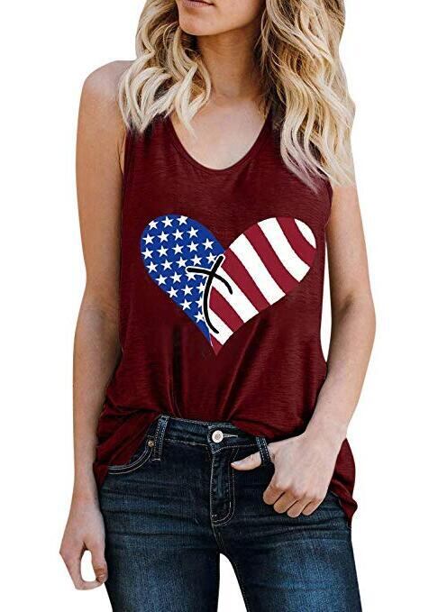 夏AliExpressebayヨーロッパとアメリカの新しいセールラブパターンプリントベストノースリーブトレンディな女性 サマー 夏物 6733063265203113