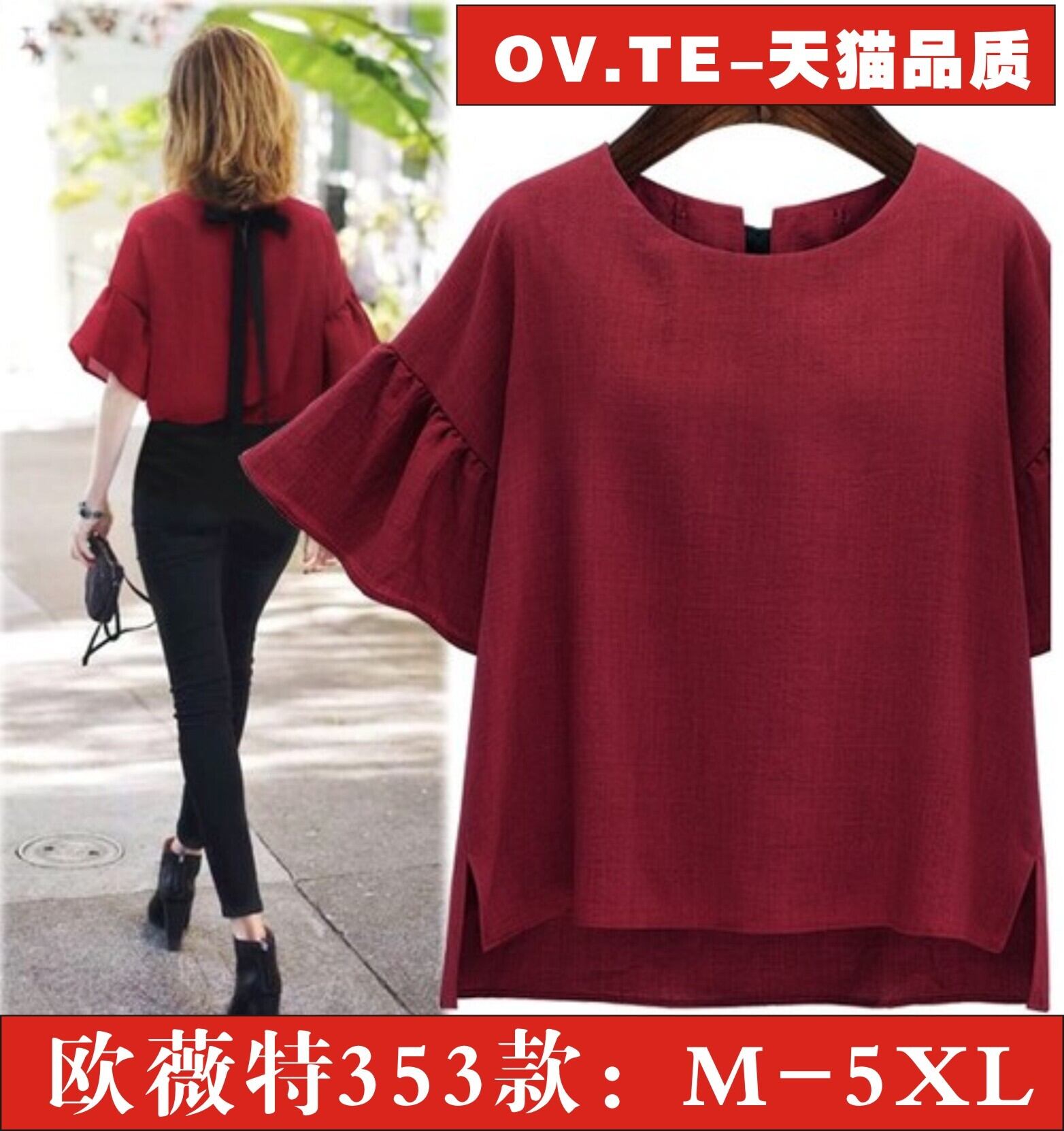 夏のニューヨーロピアンとアメリカンプラスサイズのレディースファッションラウンドネックボウフロントショートバックロング半袖シャツレディーストップT リボン ハーフスリーブ 大きめサイズ サマー 夏物 Oネック 6733011976507803