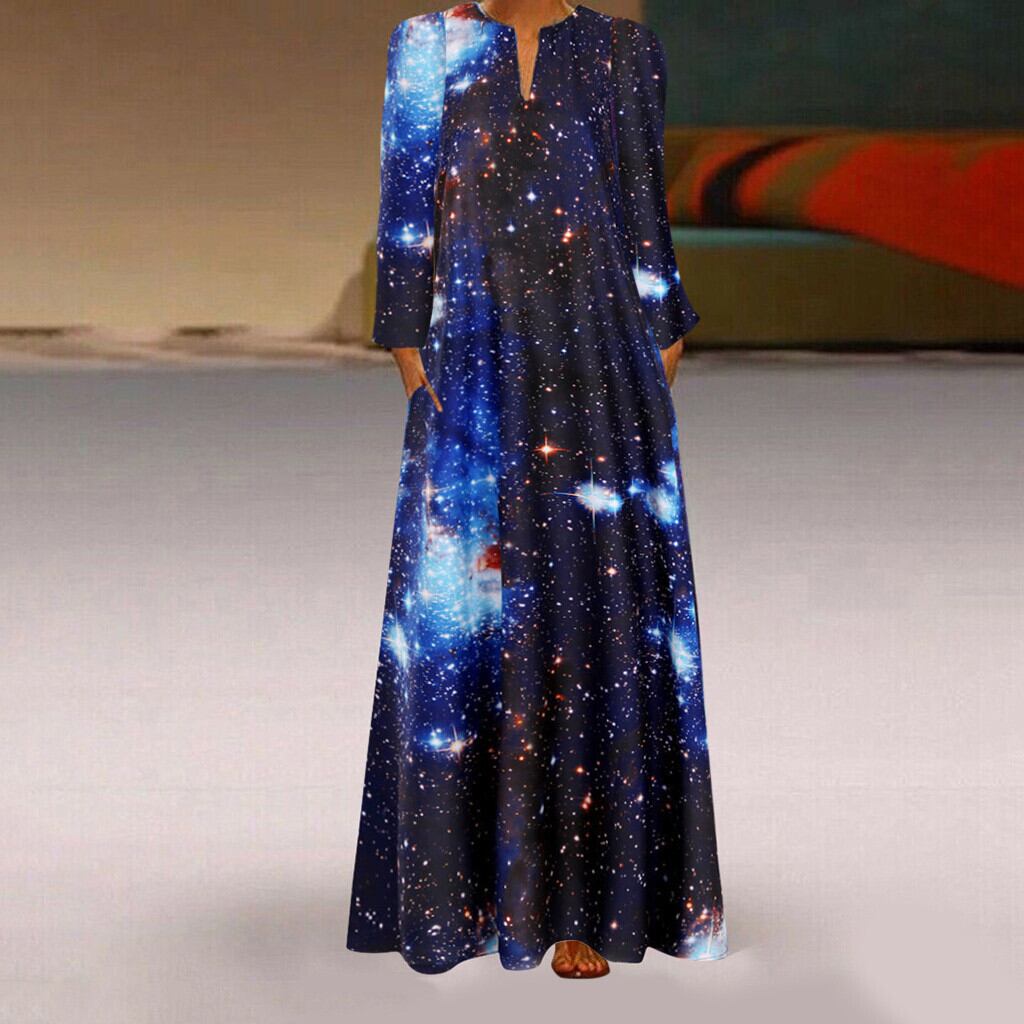 ヨーロッパとアメリカンスタイルの秋と冬のファッション新しい新しい爆発モデル3D星空プリントドレス長袖ロングスカート女性の潮 オータム 秋物 ウィンター 冬物 ヨーロピアン 6733072651808516
