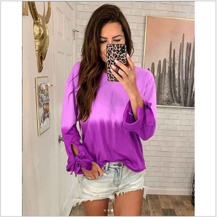 秋冬のヨーロピアンスタイルとアメリカンスタイルのストリートニューファッションレディースの新しいグラデーションルーズカジュアル長袖レースアッププリントセーター ロング オータム 秋物 ウィンター 冬物 6733096764821901