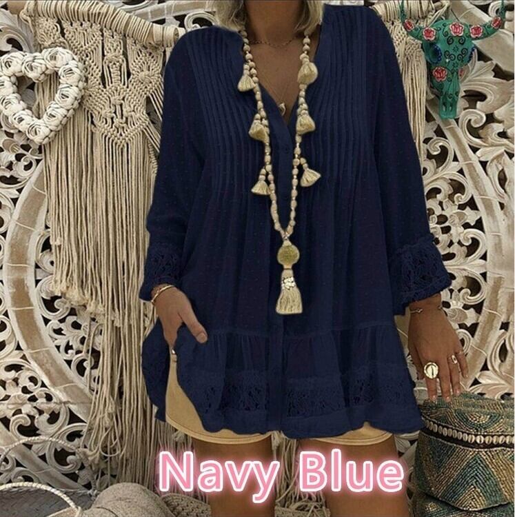 夏の女性のヨーロッパとアメリカンスタイルのプルオーバー新しいアマゾンebayレースステッチ長袖ルーズラージサイズシャツトップトレンド ロング 大きめサイズ サマー 夏物 ヨーロピアン 673308162562776
