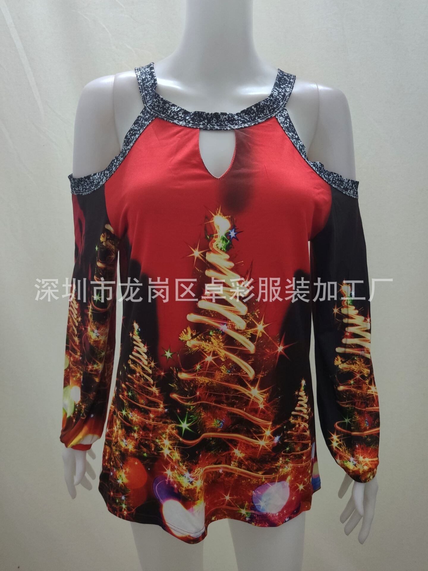 秋冬ファッション気質女性の国境を越えた爆発モデル長袖大サイズクリスマス中空女性のTシャツトップ女性のトレンド ロング 大きめサイズ オータム 秋物 ウィンター 冬物 6733090768942647