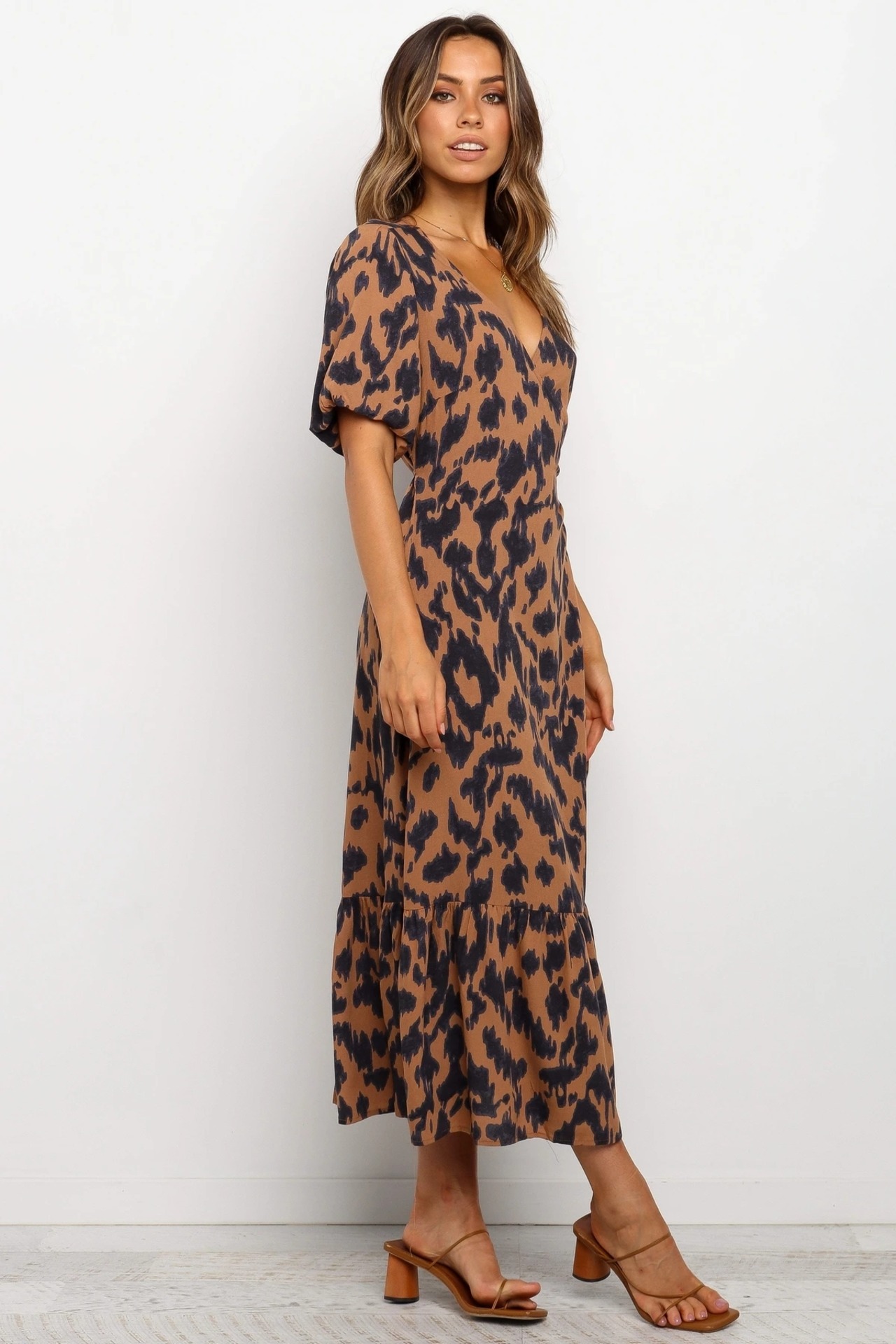 ヨーロッパとアメリカの春と夏のファッション新しいセクシーなVネックスプリットブラックプリント半袖ドレス女性の潮 スプリング 春物 サマー 夏物 ヨーロピアン 6733090960712551