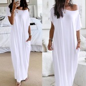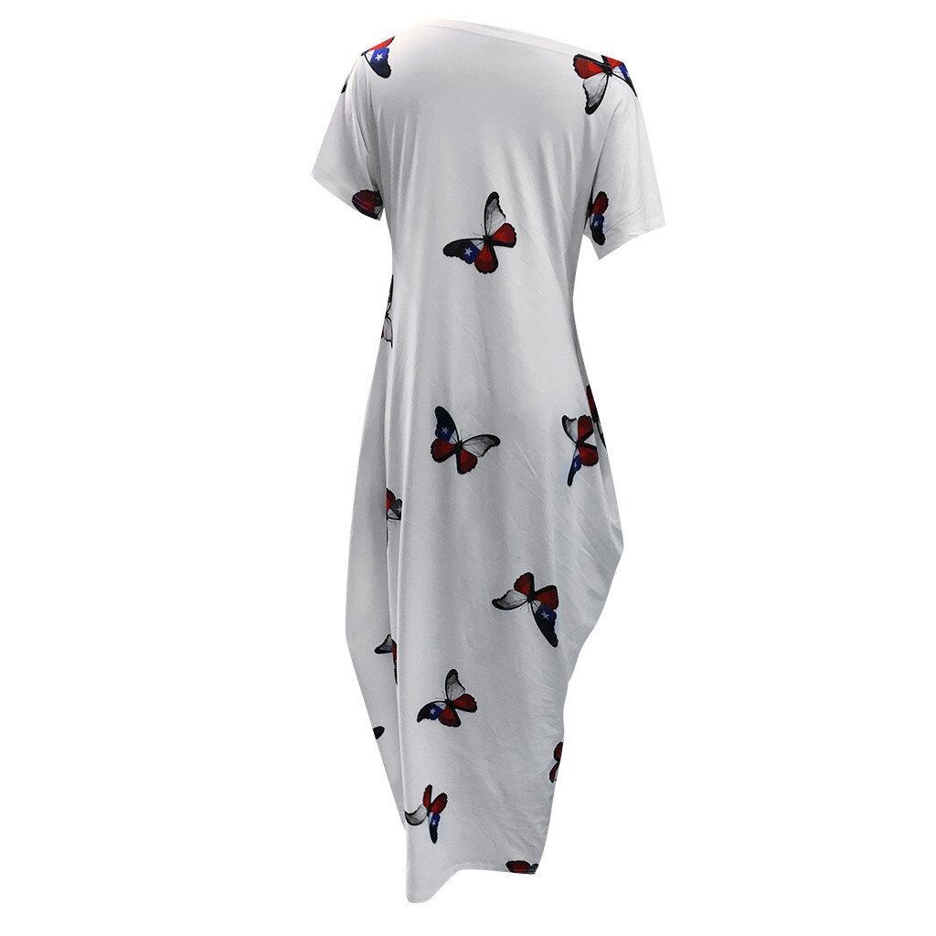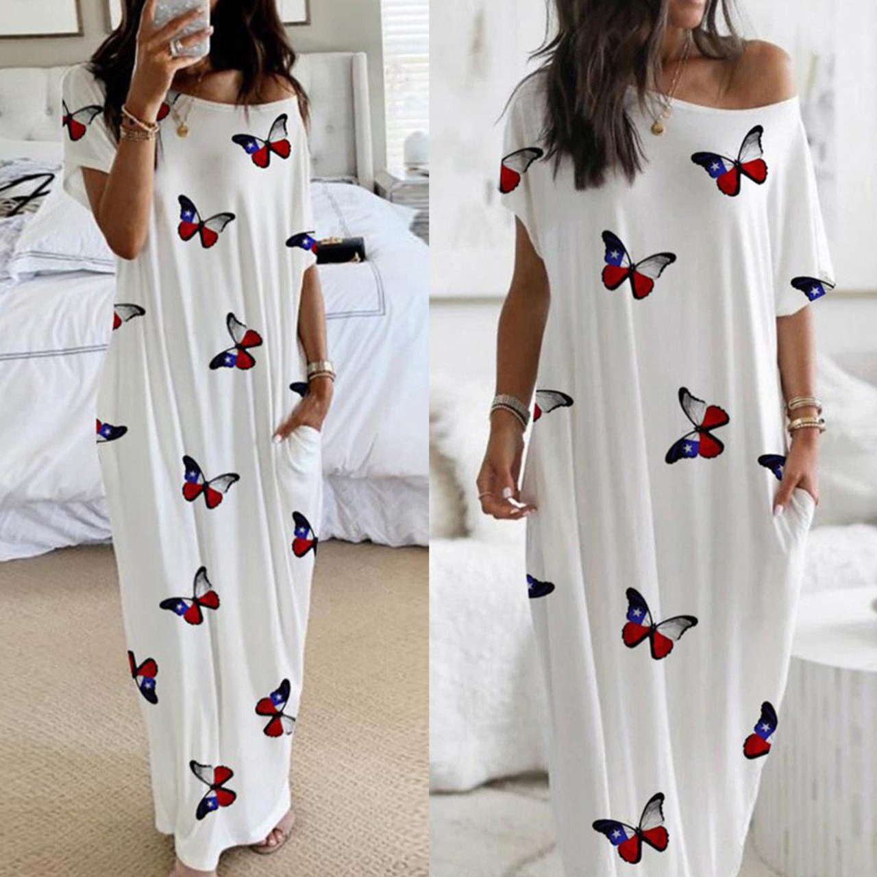 アマゾンヨーロッパとアメリカンスタイルのファッション気質女性のバタフライプリント半袖ロング無地ドレスホームトレンド ソリッドカラー ヨーロピアン 6733087537756572