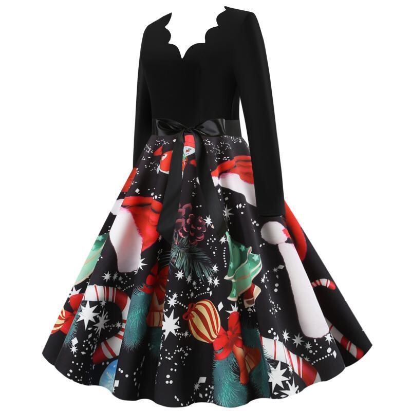 AliExpressヨーロッパとアメリカンスタイルのファッションレトロヘップバーンスタイルの印刷ステッチ長袖燃える花大スイングクリスマスドレス女性の潮 ロング フラワーデザイン ヨーロピアン 673301948458976