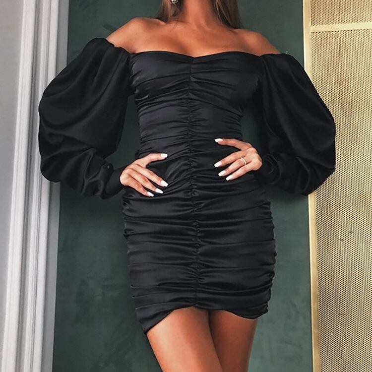 ヨーロッパとアメリカの春と秋の新しいセクシーでセクシーなオフショルダーピンクのプリーツバッグヒップスリム長袖ドレスステップスカート ロング スプリング 春物 オータム 秋物 スリムヒップ ヨーロピアン 6733028484150583
