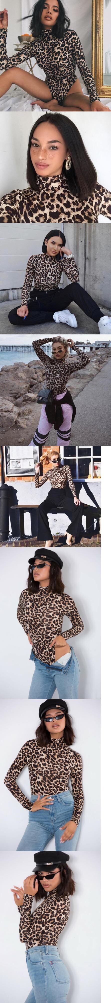 ヨーロッパとアメリカのスタイルの秋と冬の新しい女性のアマゾンハイネック長袖セクシーなヒョウジャンプスーツのトレンド ロング オータム 秋物 ウィンター 冬物 ヨーロピアン 6733085599842546