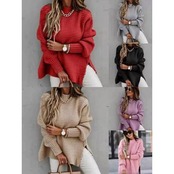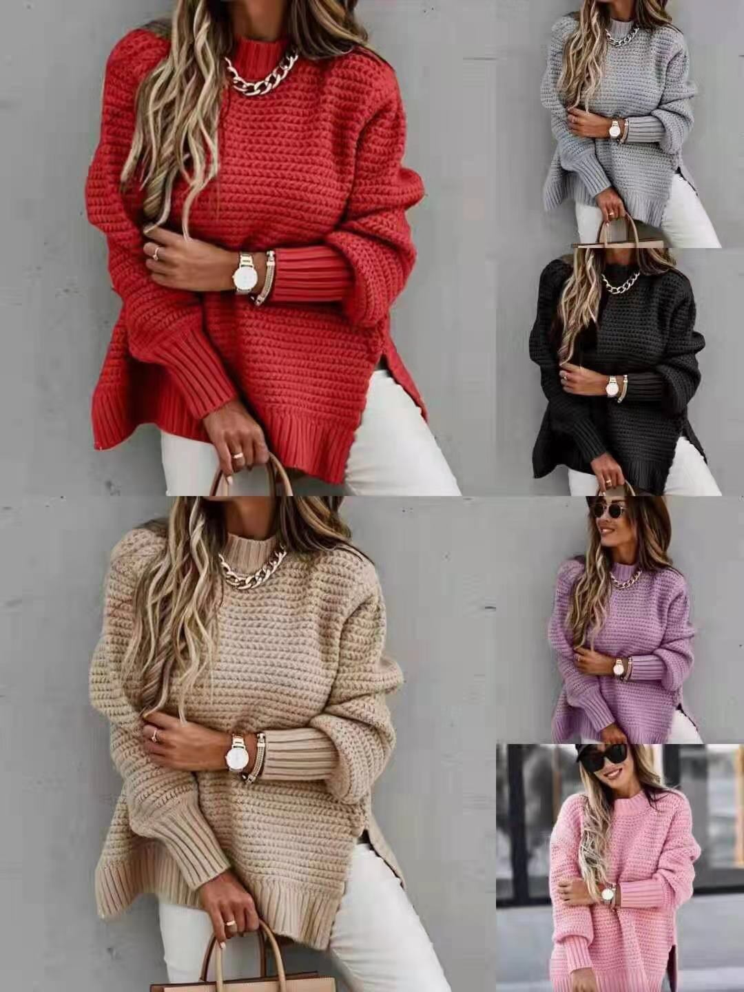 AliExpressの秋と冬のファッション気質ヨーロッパとアメリカのゆるい怠惰な風長袖プルオーバーニットセーター女性 ロング オータム 秋物 ウィンター 冬物 ヨーロピアン 6733075139106164