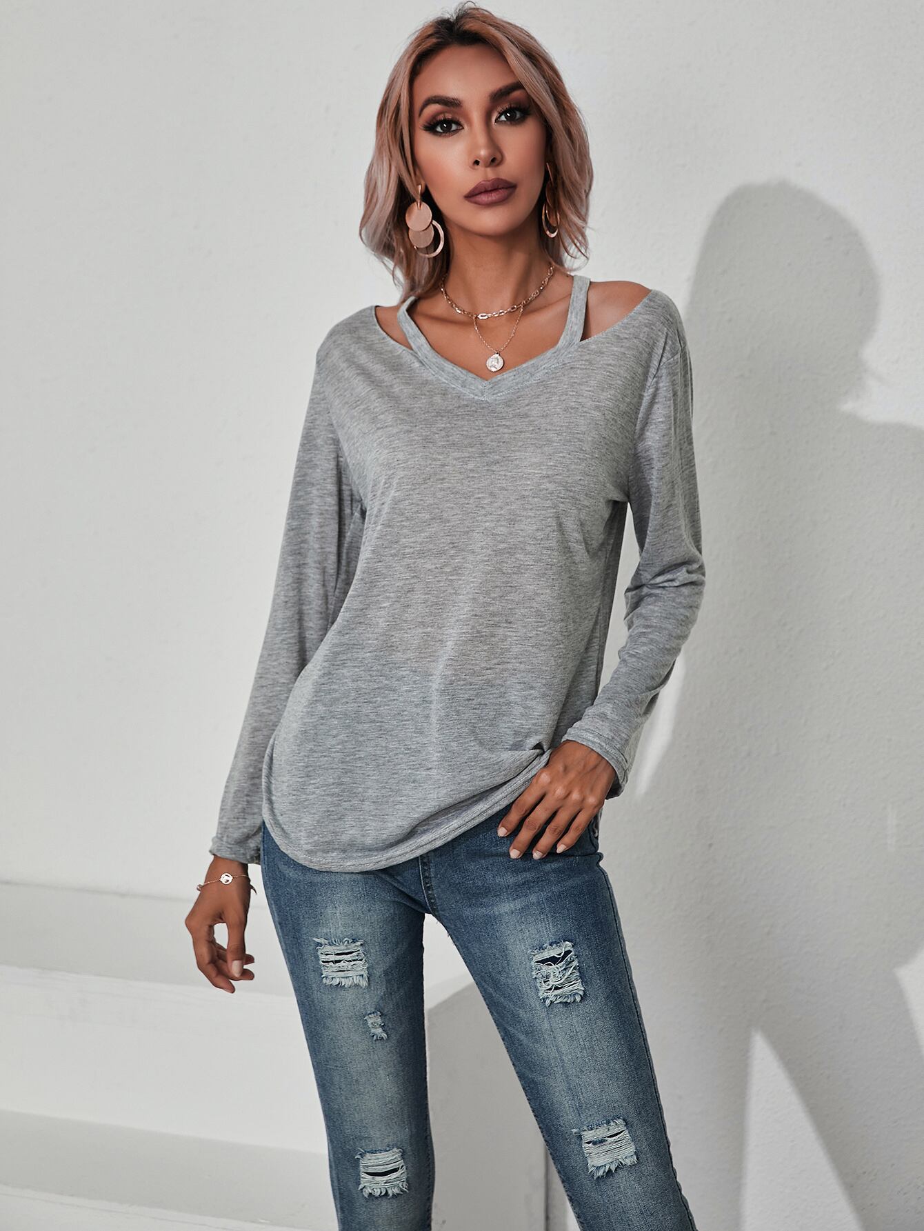 秋冬新気質ヨーロピアンスタイルエクスプレス気質レギュラー長袖Vネックトップレディースタイド ロング オータム 秋物 ウィンター 冬物 6733024128401309