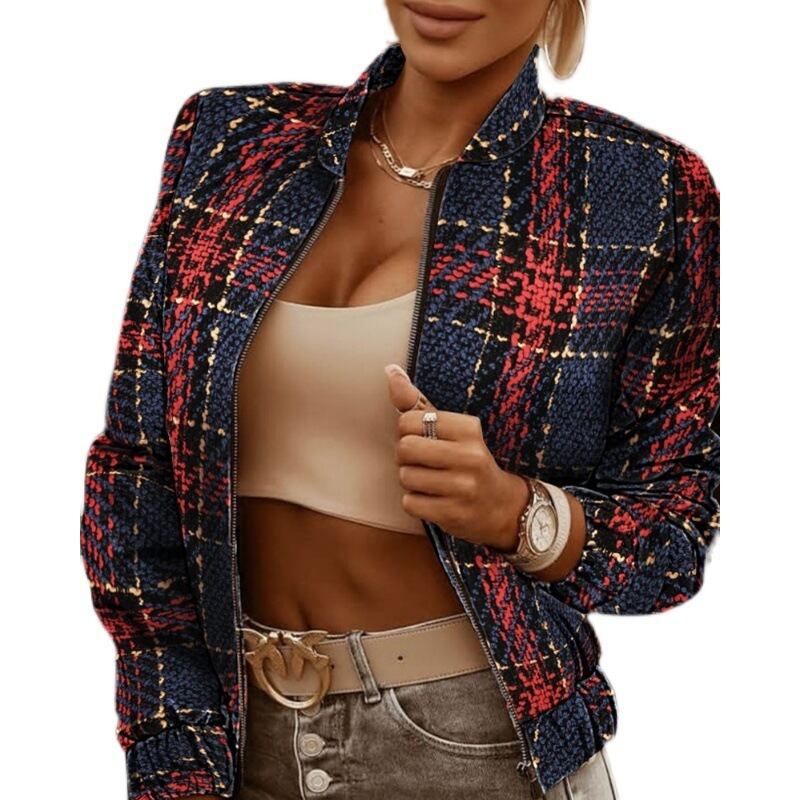 アマゾンAliExpressヨーロッパとアメリカンスタイルの秋と冬の千鳥格子ファッション新しい気質ジッパー装飾長袖カーディガンジャケット ロング オータム 秋物 ウィンター 冬物 ヨーロピアン 6733052999910451