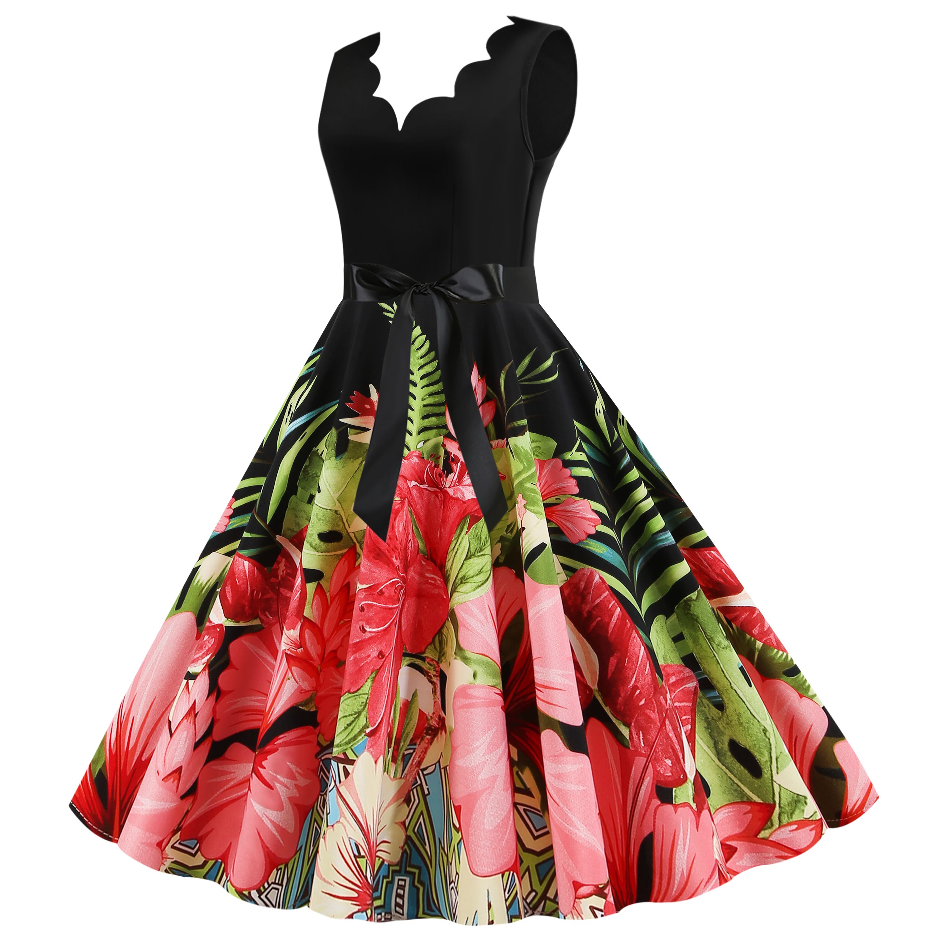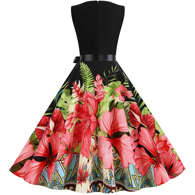 気質セクシーな新しいノースリーブVネックバーントフラワープリントラージスイングドレスを販売するヨーロッパとアメリカンスタイルのウエストプルオーバーファッション フラワーデザイン ヨーロピアン 6733071489366518