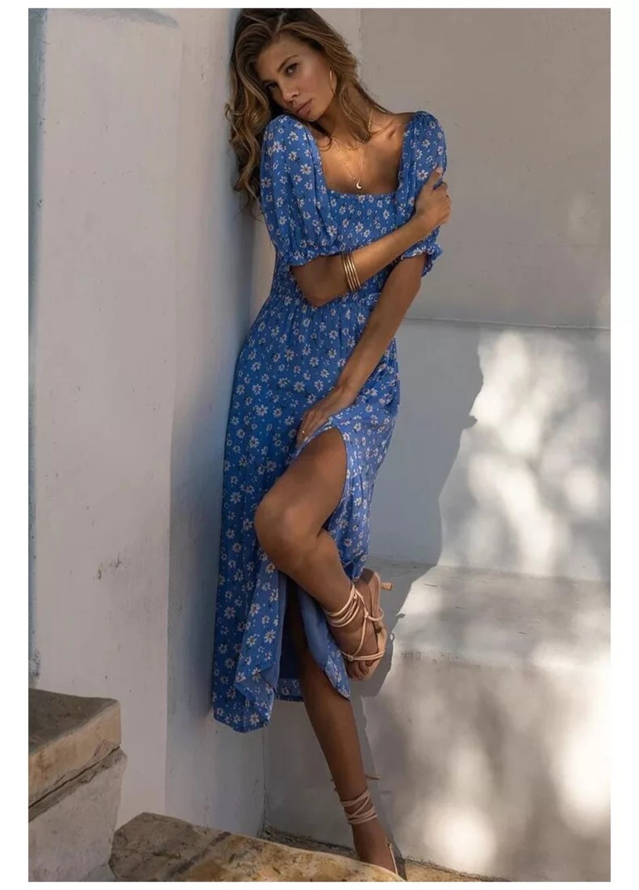 ヨーロッパとアメリカンスタイルの夏の新作販売気質プリントスリットドレス女性のトレンド サマー 夏物 ヨーロピアン 6733071884044524