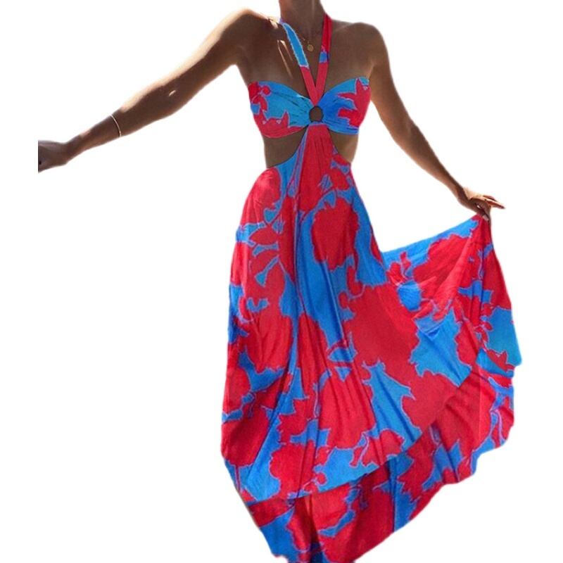 新しいヨーロッパとアメリカのボヘミアンドレス印刷Vネック2色ホルターネックセクシーなドレスの女性を販売する夏のファッション サマー 夏物 ヨーロピアン 673303456485611