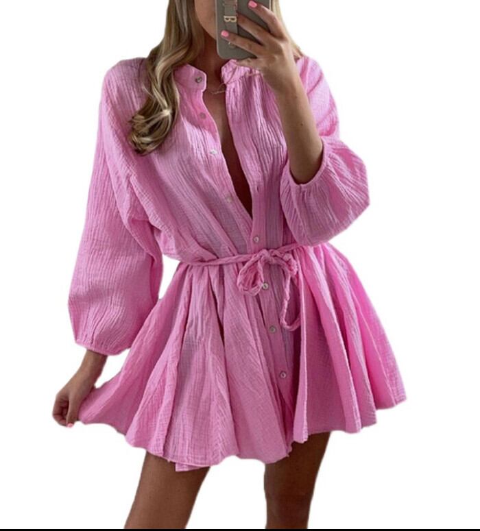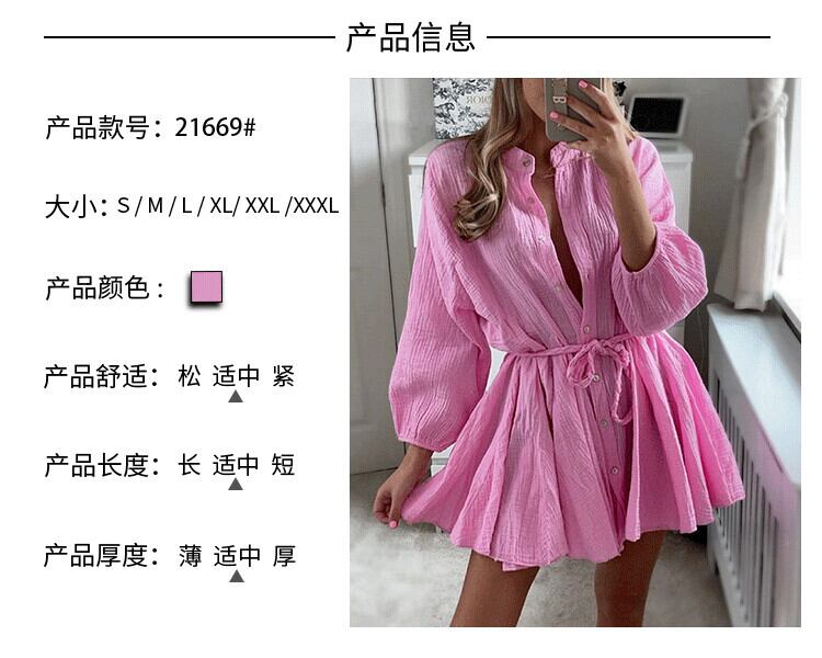 春夏新作欧米の年齢を減らすスタンドカラーシングルブレストキャンディーカラーAラインルーズ長袖ドレスドールスカートドレス ロング スプリング 春物 サマー 夏物 ヨーロピアン 6733052147953423