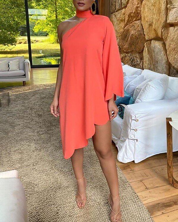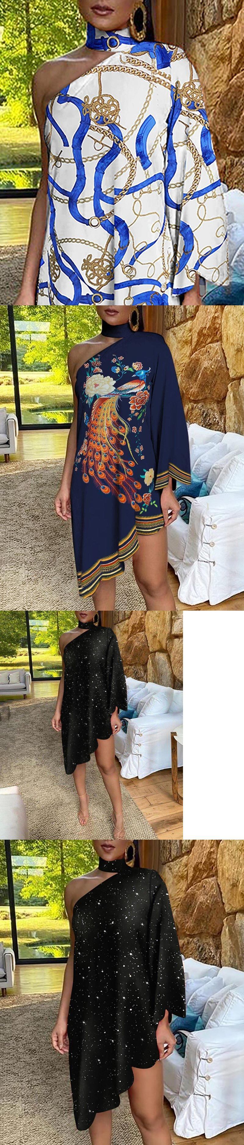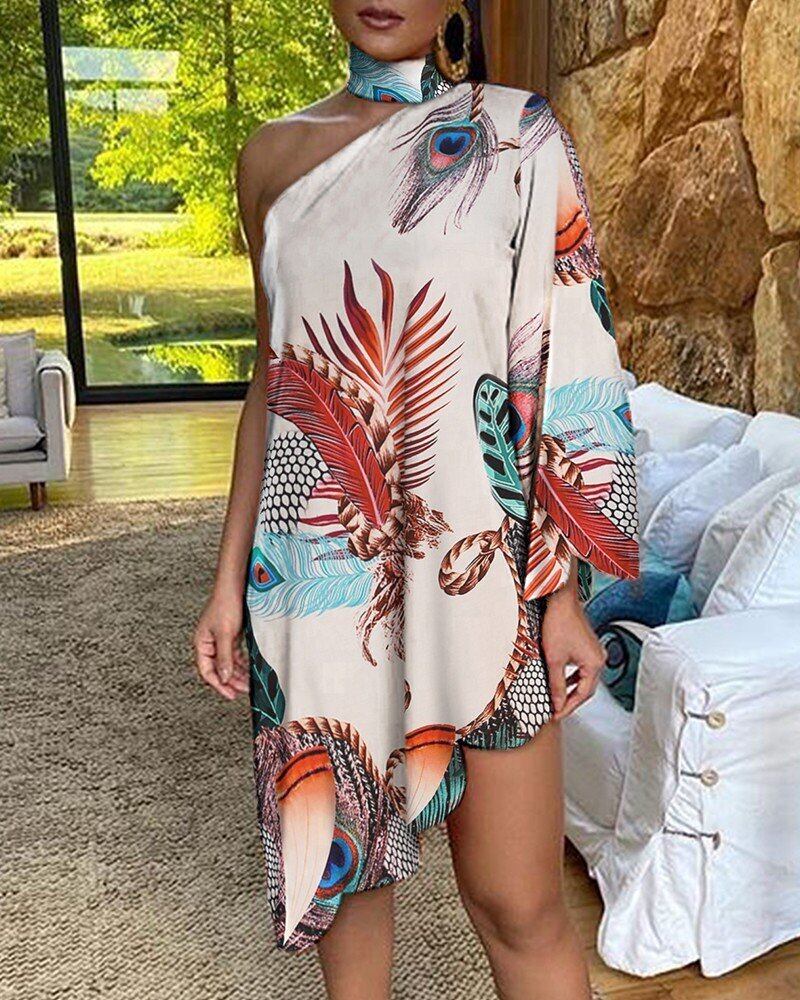 ヨーロッパとアメリカンスタイルのファッション新しい爆発モデルAmazonAliExpressセクシーフリルプリントワンスリーブオフショルダードレス ヨーロピアン 673305453823290
