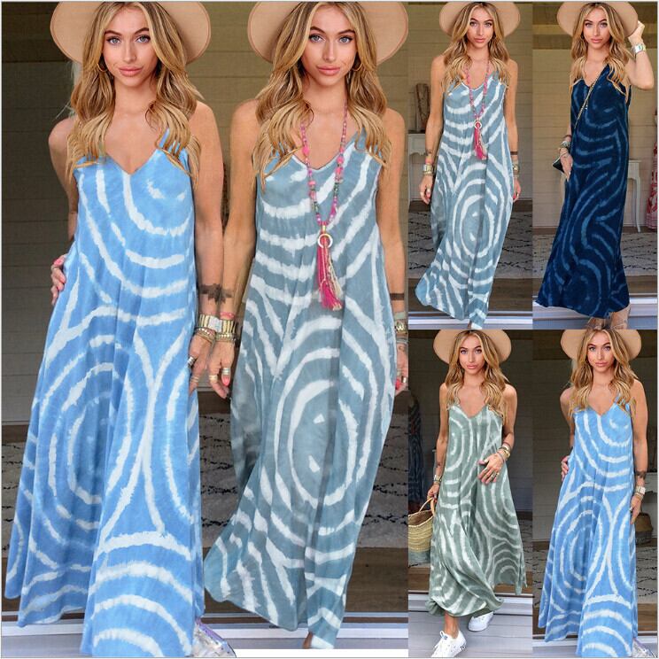 夏の新しいヨーロッパとアメリカのVネックサスペンダーノースリーブロングスカートヨーロッパとアメリカの外国貿易ボヘミアンプリントノースリーブドレストレンド サマー 夏物 ヨーロピアン 6733063795735318