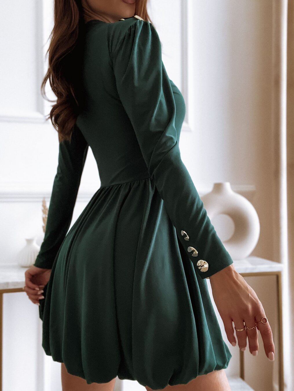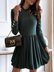 AliExpressの春と秋のファッションヨーロッパとアメリカの無地のラウンドネックセクシーなスリムプリンセスドレス長袖プリーツドレス女性のトレンド ロング スプリング 春物 オータム 秋物 Oネック ソリッドカラー ヨーロピアン 6733016159104562