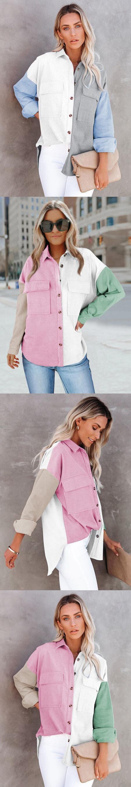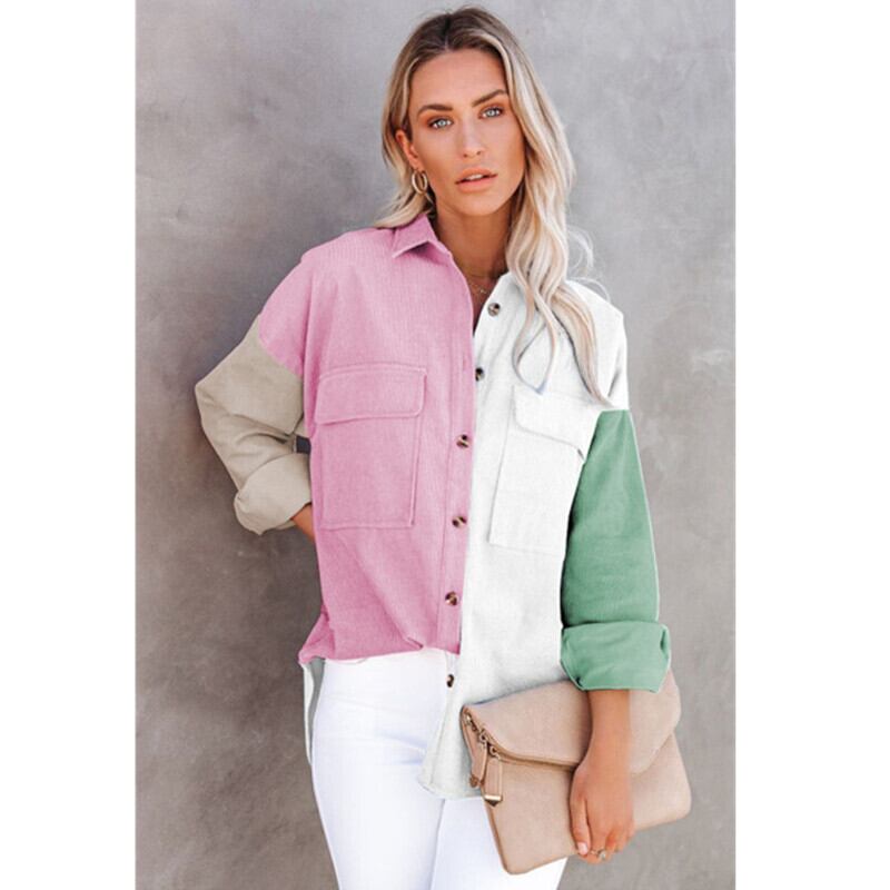 コーデュロイシャツヨーロッパとアメリカンスタイルのファッションアマゾンの新しいカラーマッチングブレストダブルポケットカジュアルシャツジャケット女性の潮 ヨーロピアン 6733079775584321