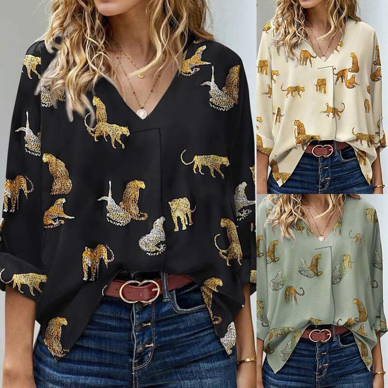 春、秋、冬の新作ファッションヨーロッパとアメリカのプラスサイズの女性用ルーズTシャツVネック長袖トッププリントシャツ ロング 大きめサイズ スプリング 春物 オータム 秋物 ウィンター 冬物 ヨーロピアン 6733079921816346