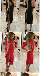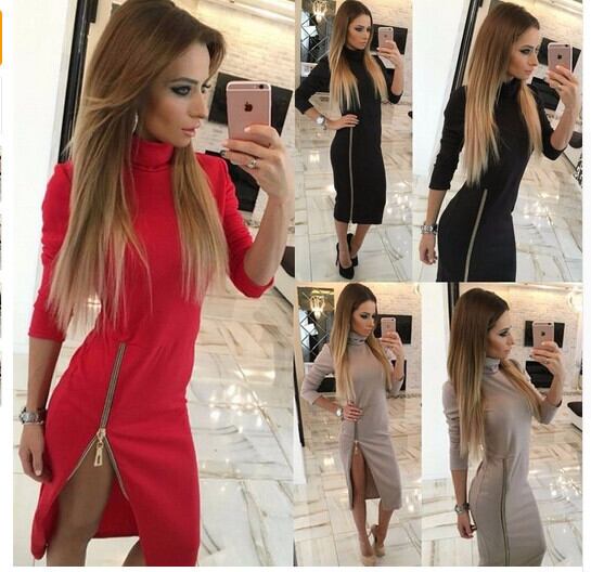 2016年秋冬ファッションヨーロピアンアメリカンスタイルの新しいジッパースリットドレスレディースタイド良質 オータム 秋物 ウィンター 冬物 6733071850439122