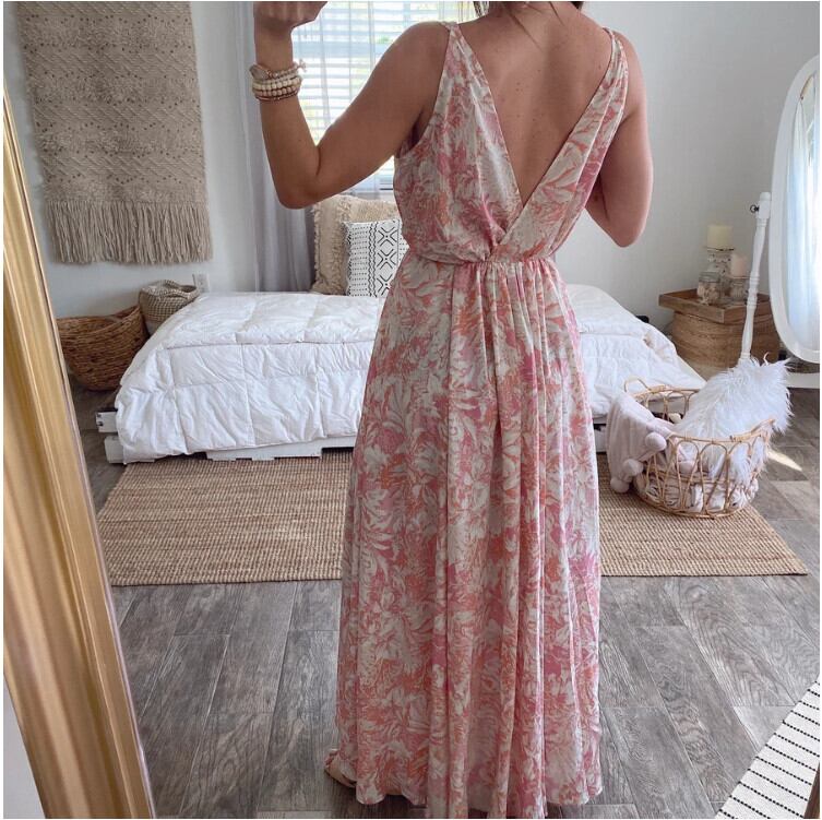 AliExpressebayヨーロッパとアメリカンスタイルの新しい不規則なロングスカートノースリーブ中空オープンバックプリントスウィートドレストレンド 大人ガーリー キュート カジュアル ヨーロピアン 6733025533205072