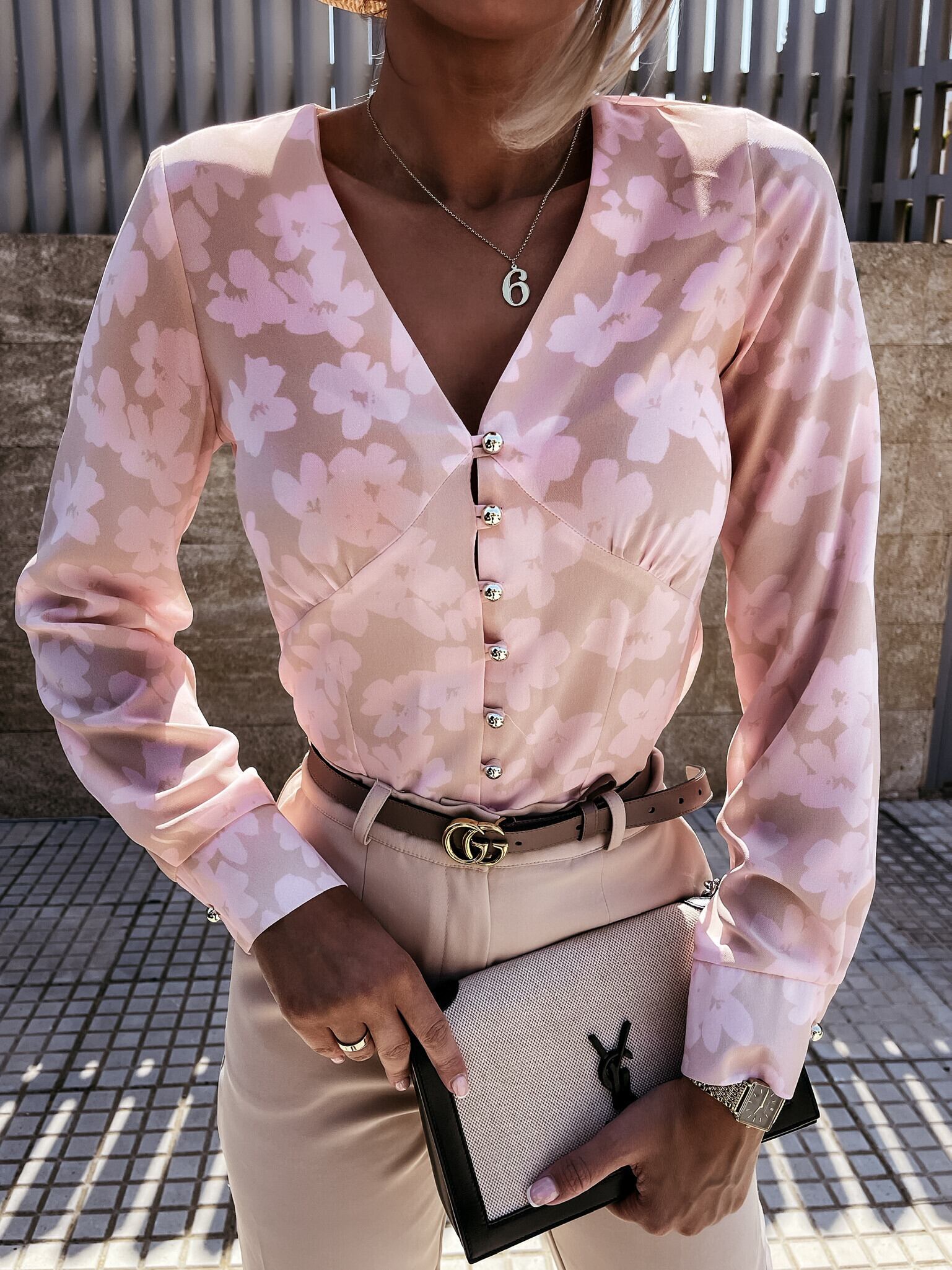 ヨーロッパとアメリカンスタイルの女性の春と夏の気質トップVネックプリントウエスタンスタイルのボタンカーディガンシャツスリム長袖シャツタイド ロング スプリング 春物 サマー 夏物 ヨーロピアン 673308853600291