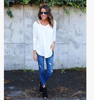秋冬のヨーロピアンスタイルとアメリカンスタイルのストリート気質新しい不規則でセクシーなファッションVネックニットトップボトミングシャツレディースTシャツ オータム 秋物 ウィンター 冬物 6733041360263872