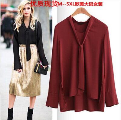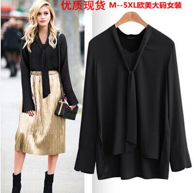 2017年欧米の春夏ファッション新作大サイズ薄手無地パーソナリティレースアップシャツレディースボトミングシャツ 大きめサイズ スプリング 春物 サマー 夏物 ソリッドカラー ヨーロピアン 6733076897026306