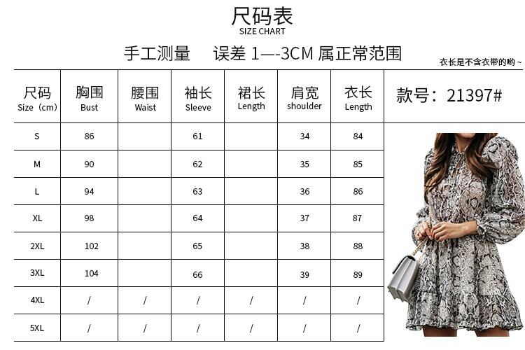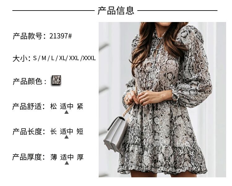 春と秋ヨーロッパとアメリカのスタイルのストリートファッションスネークパターンラウンドネック長袖プルオーバーネクタイウエストケーキショートスカートドレス女性 ロング スプリング 春物 オータム 秋物 Oネック ヨーロピアン 6733084372400151