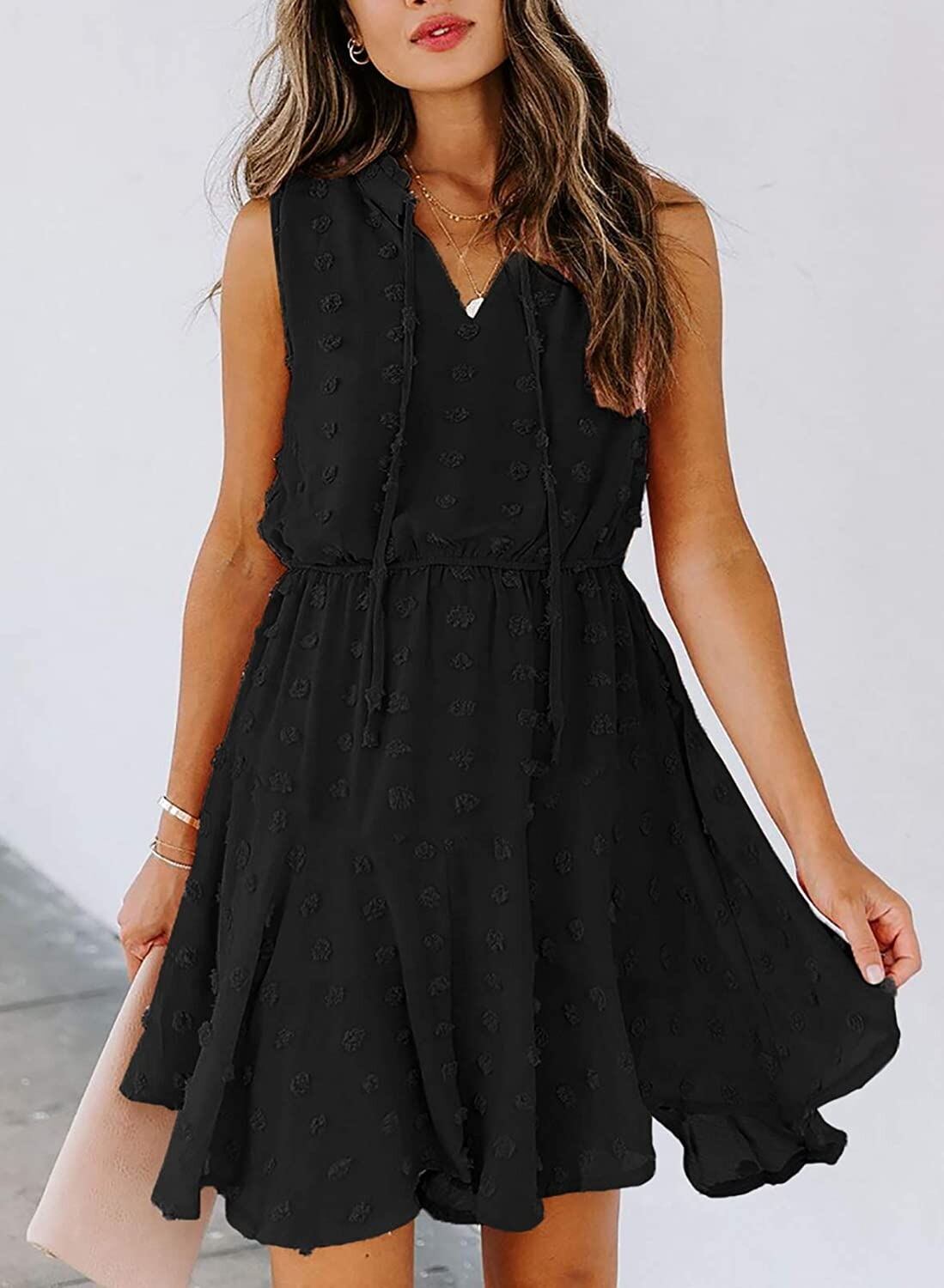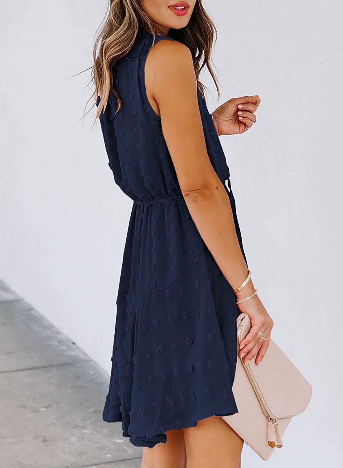 ヨーロッパとアメリカンスタイルの夏の女性の中空ファッション無地ドットドレスレースウエスト薄い通気性ノースリーブスカート サマー 夏物 ソリッドカラー ヨーロピアン 6733039373256130