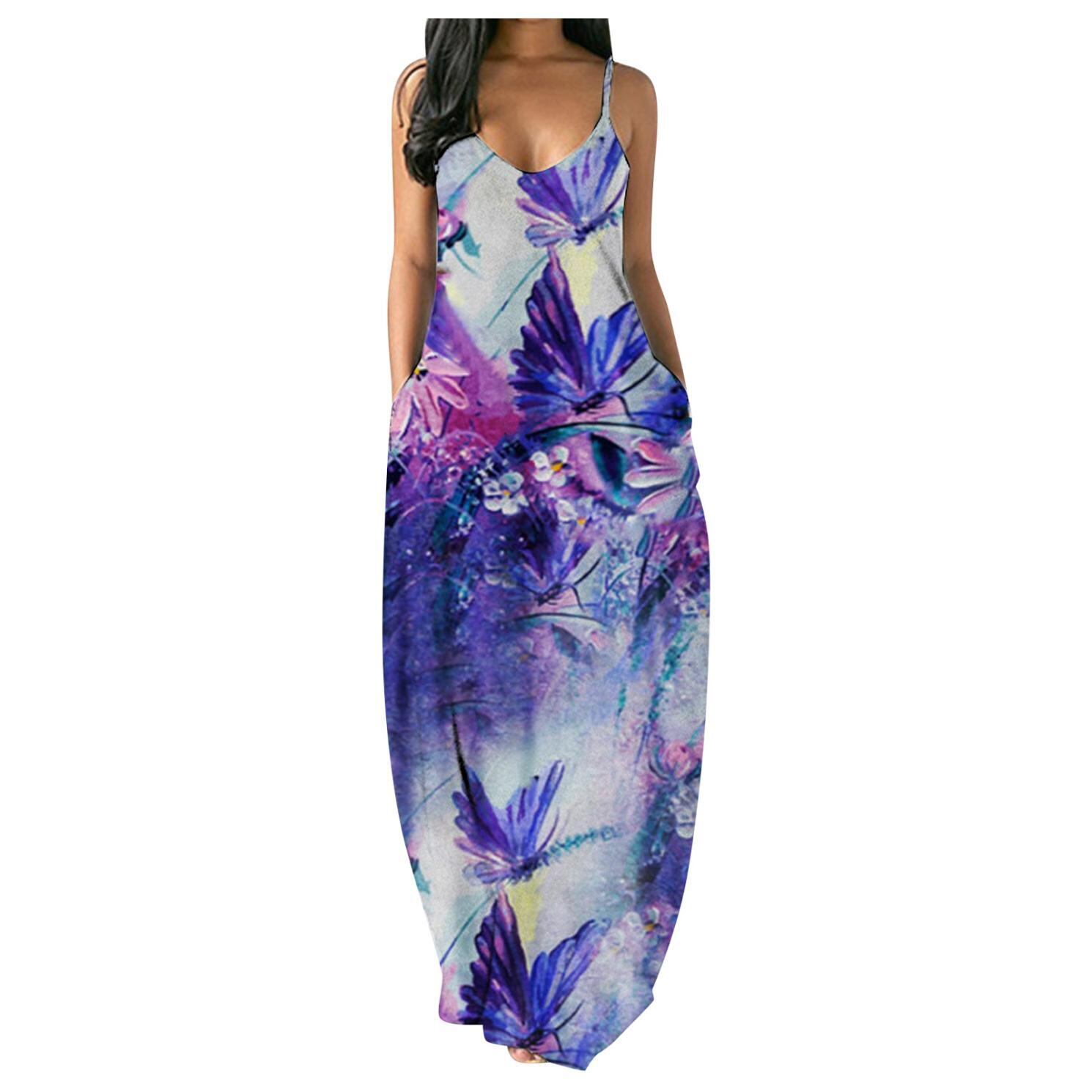 ヨーロッパとアメリカンスタイルのファッション夏の新しいアマゾンセールノースリーブプリントドレスレディースサスペンダーロングスカートレディースタイド サマー 夏物 ヨーロピアン 6733071629860230