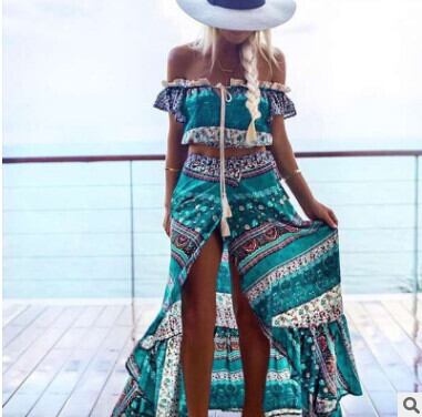 ヨーロッパとアメリカンスタイルの春と夏の新しいファッション販売プルオーバー半袖フリルツーピースノースリーブプリントロングスカートトレンディな女性 スプリング 春物 サマー 夏物 ヨーロピアン 6733047533664391