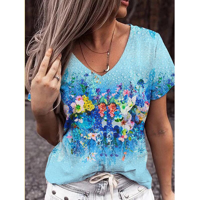 夏の独立局は、ヨーロッパとアメリカンスタイルのファッション気質の女性のVネックプリント半袖カジュアルTシャツのトップトレンドを望んでいます サマー 夏物 ヨーロピアン 6733033398512775