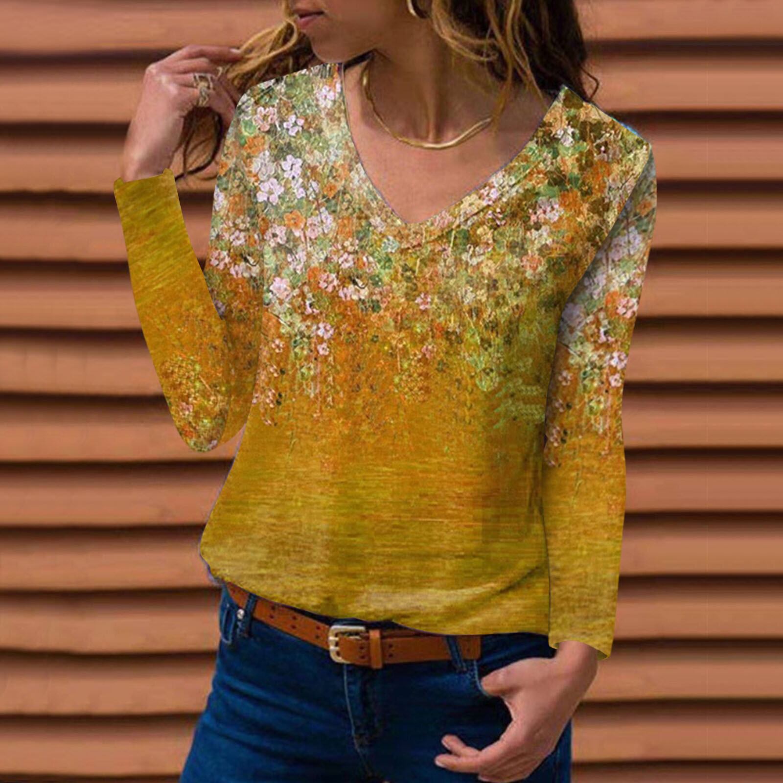 ヨーロッパとアメリカンスタイルの春と秋はアマゾン独立局の秋と冬の新しいVネック印刷長袖女性のTシャツトップを望みます ロング スプリング 春物 オータム 秋物 ウィンター 冬物 ヨーロピアン 6733066164217171