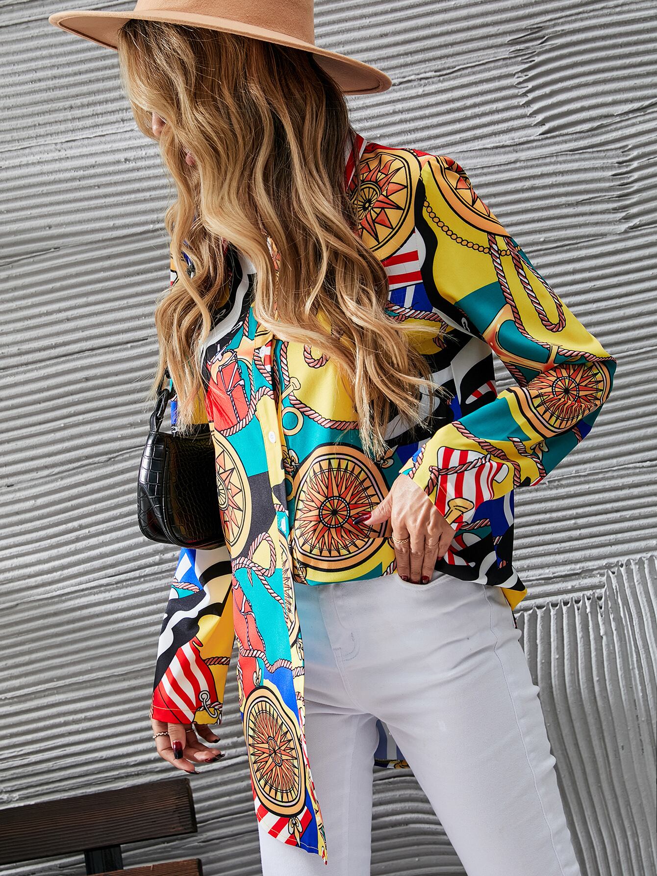 ヨーロピアンとアメリカンスタイルの新しいファッション春の気質AliExpressアマゾンイエロープリントシャツトレンディな女性 スプリング 春物 6733091218580534