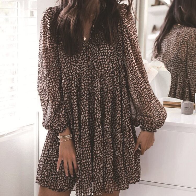 春の新作ファッションアマゾンは、国境を越えた女性のセクシーなスネークスキンプリントの長袖ドレスをトレンディに願っています ロング スプリング 春物 673304279806522