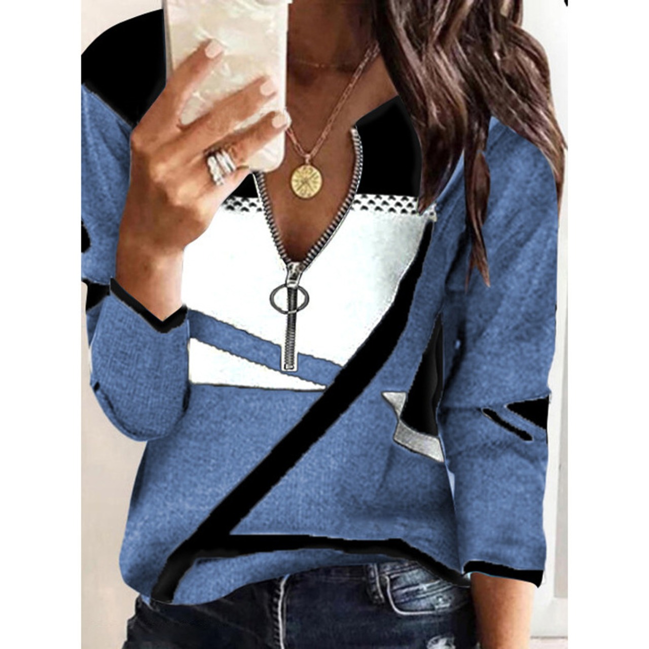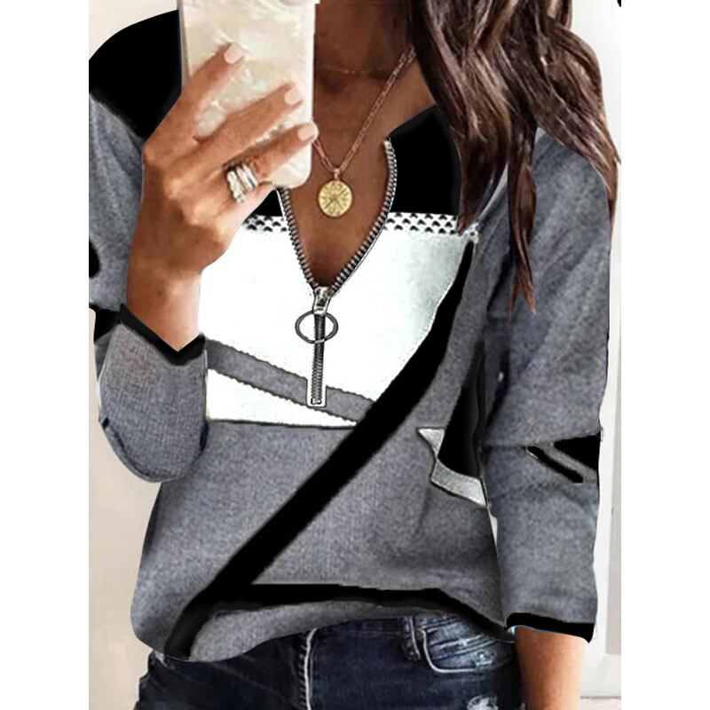 クロスボーダーレディース秋冬新色マッチングジッパーVネックレディースラージサイズカジュアルセーターレディーストレンド 大きめサイズ オータム 秋物 ウィンター 冬物 6733028447337240