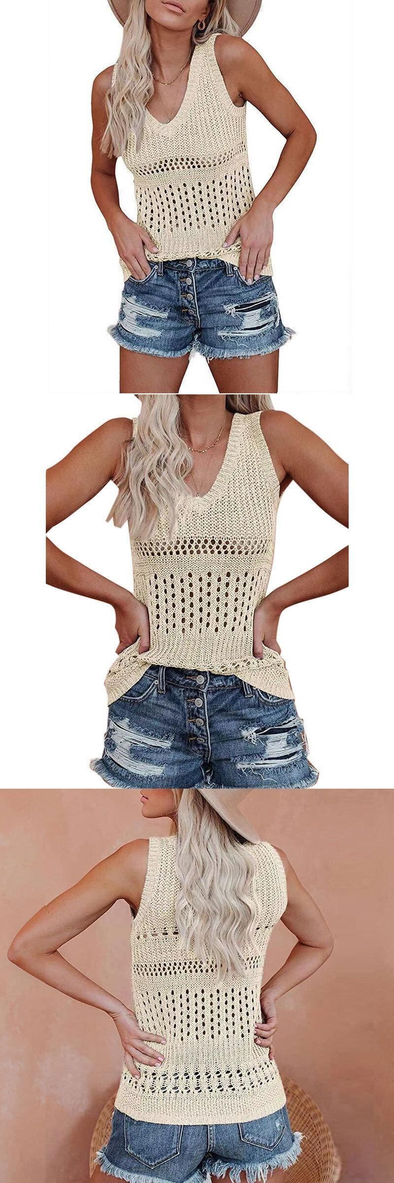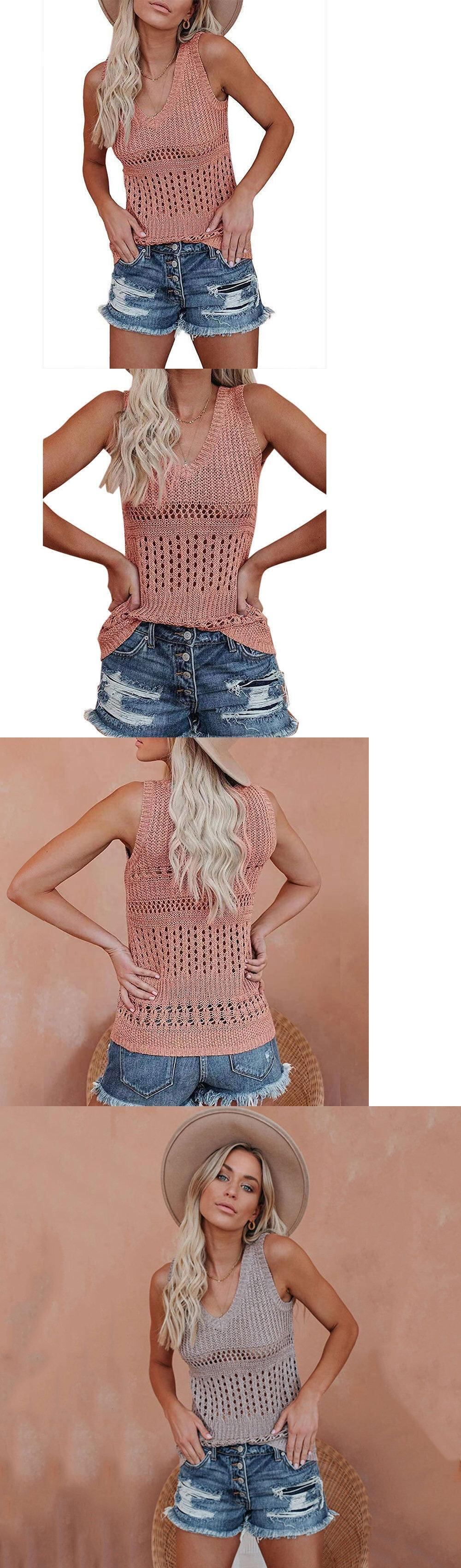 夏のヨーロッパとアメリカンスタイルのファッション新しいアマゾンファッションVネックベスト、空のアイスシルクサスペンダーニットセーター女性のトレンド サマー 夏物 ヨーロピアン 6733043501133806