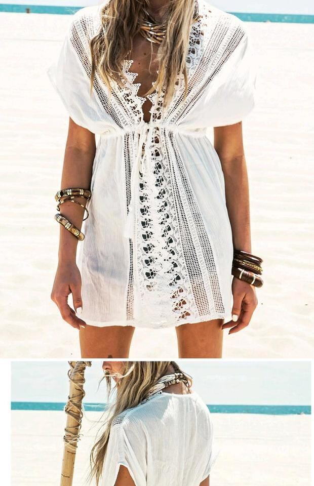 AliExpressのセール夏のファッションヨーロッパとアメリカのレースステッチルーズビキニブラウスレースアップビーチスカート日焼け止め服 サマー 夏物 ヨーロピアン 6733055600079744