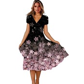 ヨーロッパとアメリカのストリートファッションハイウエストスカート新しい女性のVネック半袖プリントロングスカートポジショニングプリント大スイングドレス ハイウェスト ヨーロピアン 6733031458488957