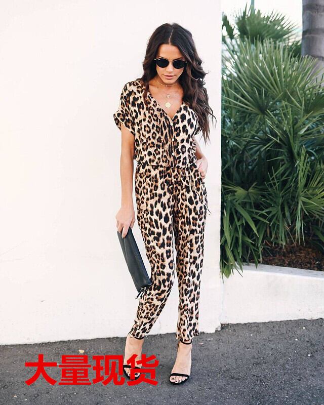 夏の新しいAliExpressクリックセクシー半袖ヒョウ柄ファッションジャンプスーツジャンプスーツ女性の潮 サマー 夏物 6733084803323639
