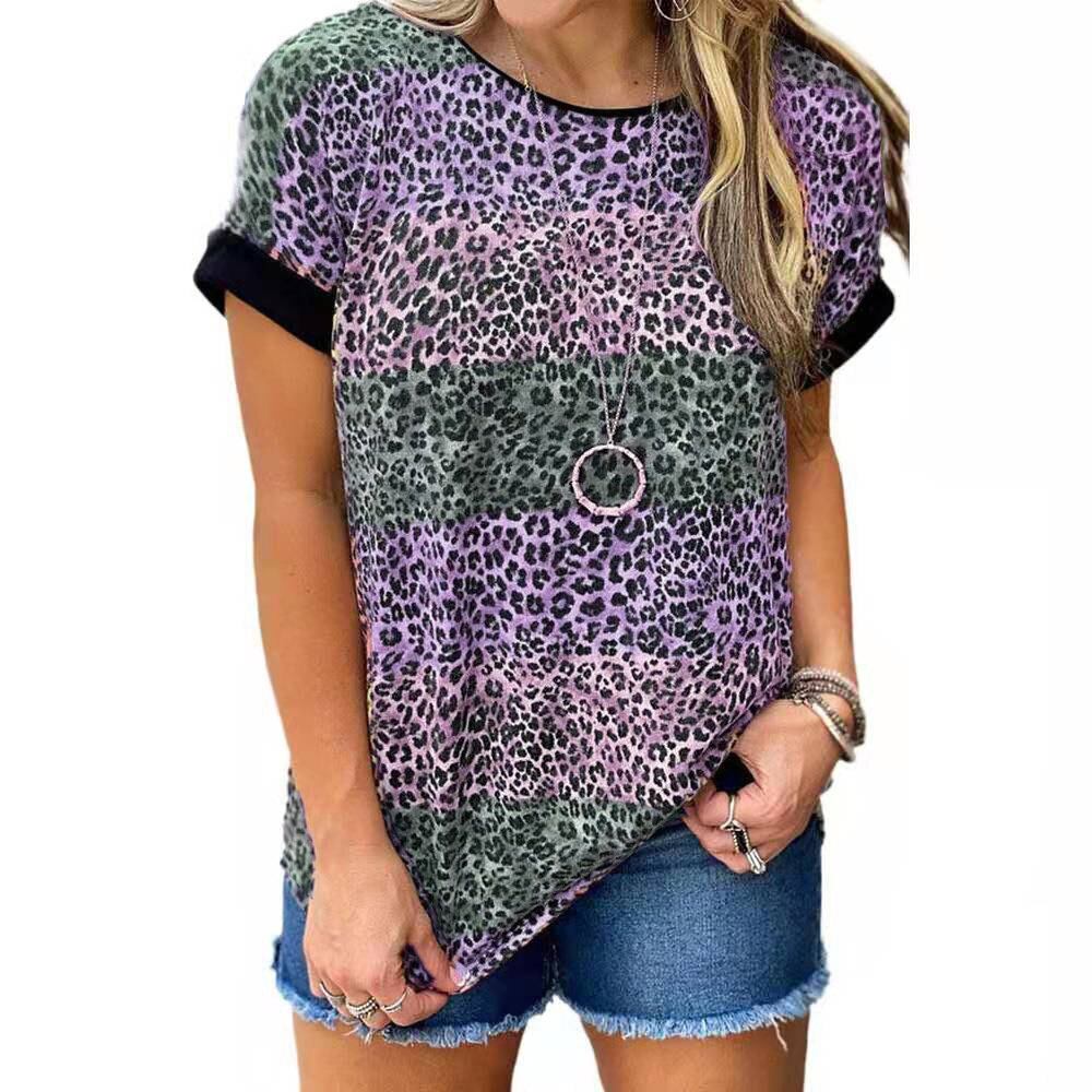 夏のアマゾンは、ヨーロッパとアメリカンスタイルのファッション気質の新しい女性のヒョウ柄のラウンドネック半袖Tシャツトップを望みます サマー 夏物 Oネック ヨーロピアン 6733034640074389