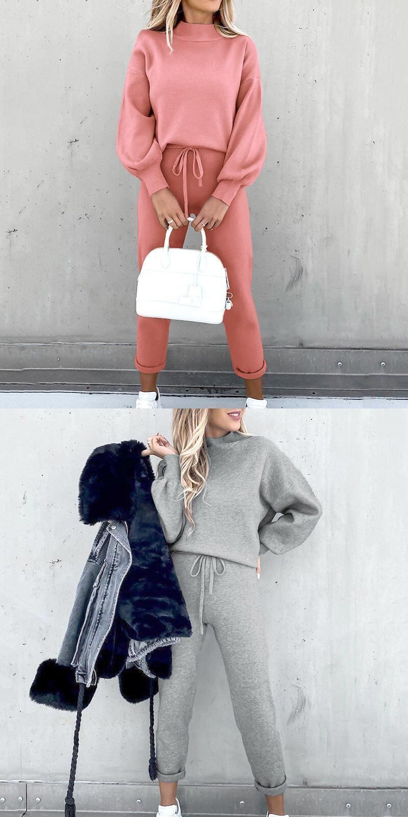 秋冬の女性用ヨーロッパとアメリカのセータースーツAmazonAliExpressハイネックカジュアル無地パンツツーピースタイド オータム 秋物 ウィンター 冬物 ソリッドカラー ヨーロピアン 6733012419546680
