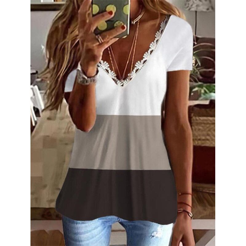 夏の爆発スタイルアマゾン独立局ヨーロッパとアメリカの花の羽の模造綿のレースVネックZhuoCai半袖トップTシャツの女性 コットン サマー 夏物 フラワーデザイン ヨーロピアン 6733025535031696